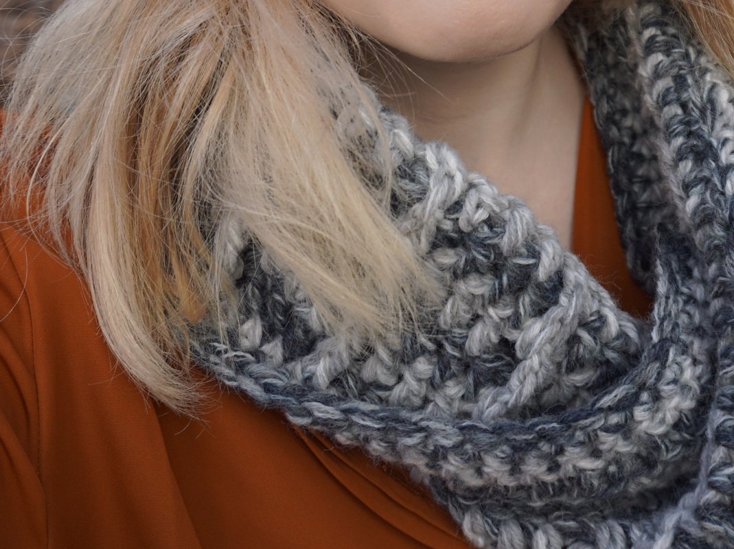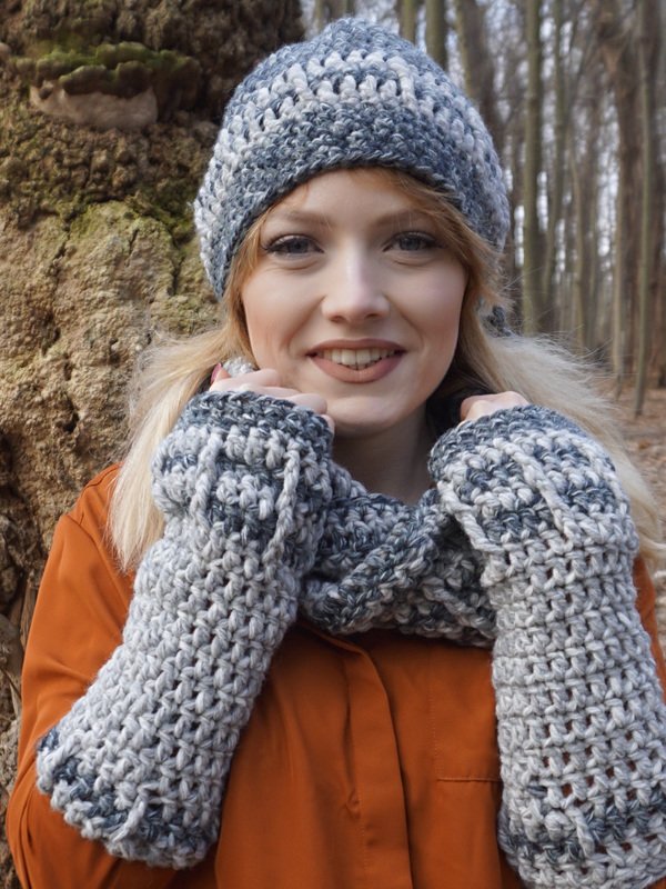 Auch dieser kuschelige Rundschal/Loop gehört zu meinem Winterset. Das besondere ist, dass er in sich verdreht ist. Er wird in Runden gearbeitet. Das komplette Set besteht aus Mütze, Loop und Stulpen. Ein Reliefmuster ziert alle drei Teile. In der bebilderten Anleitung wird genau beschrieben wie er gearbeitet wird.