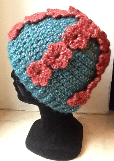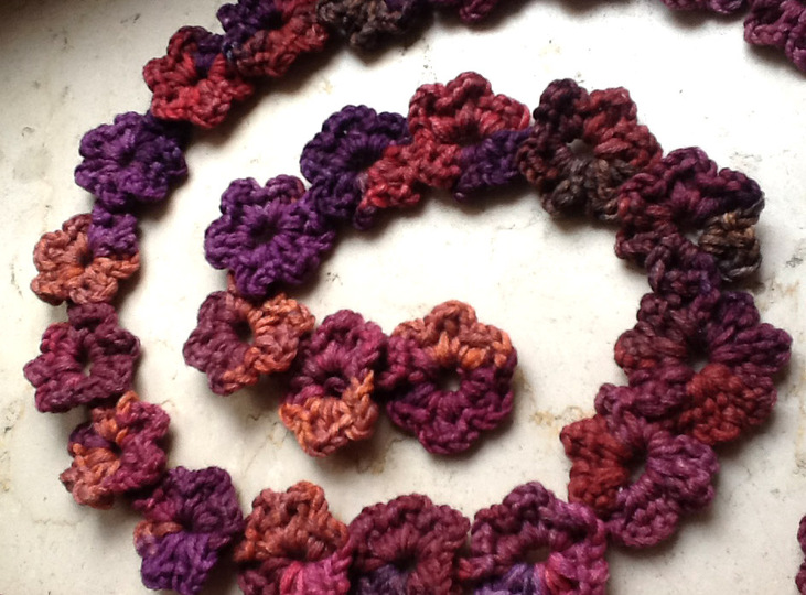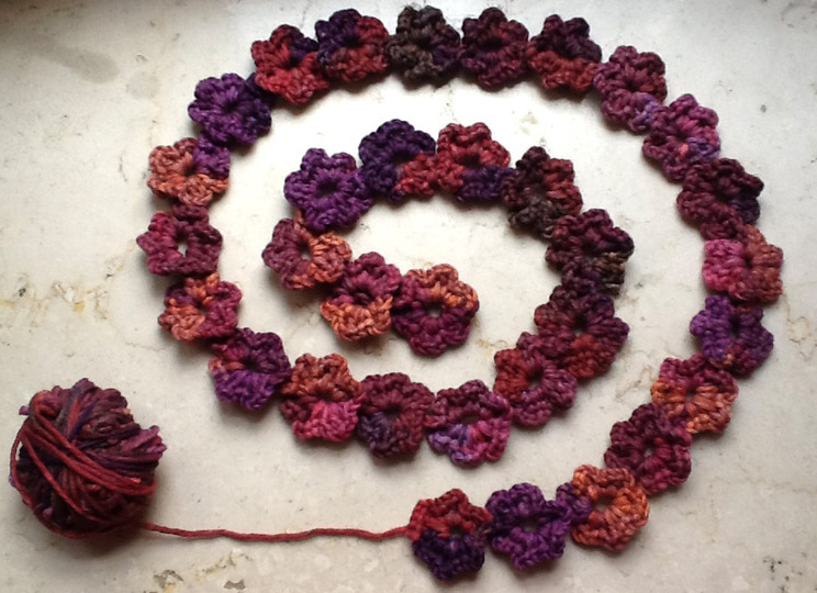 Diese einfache Blumenborte kannst Du wirklich aus jeder Wolle machen, auch aus Wollresten.