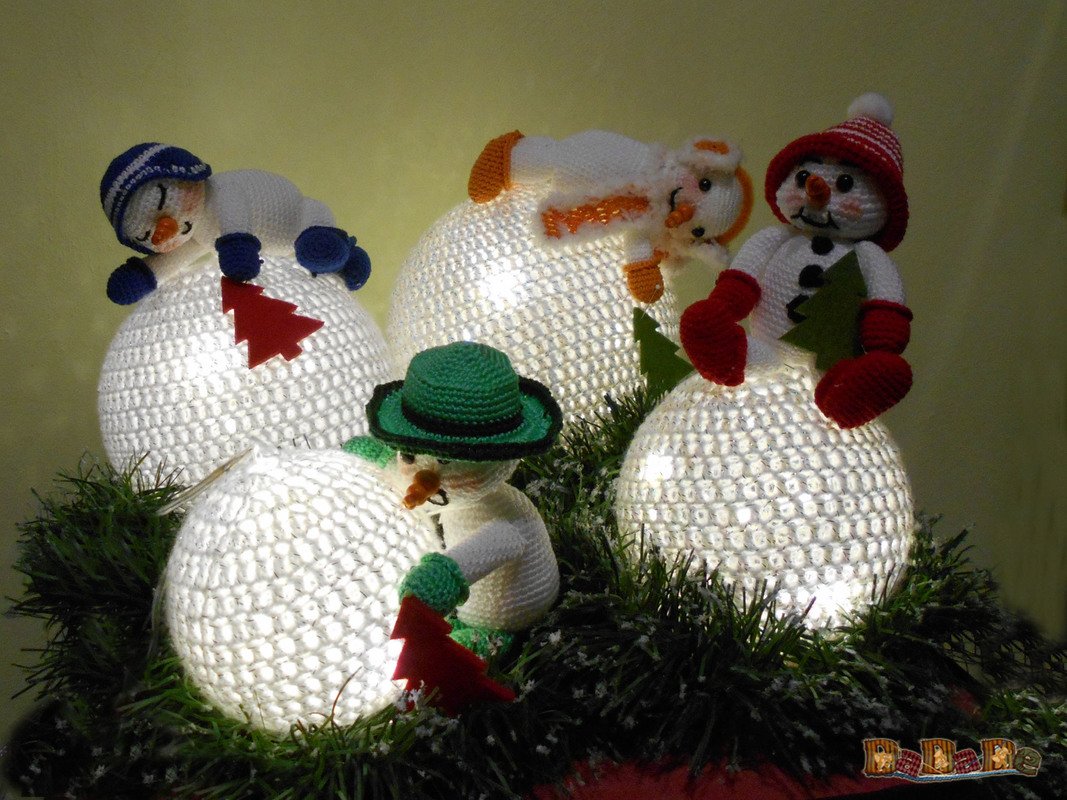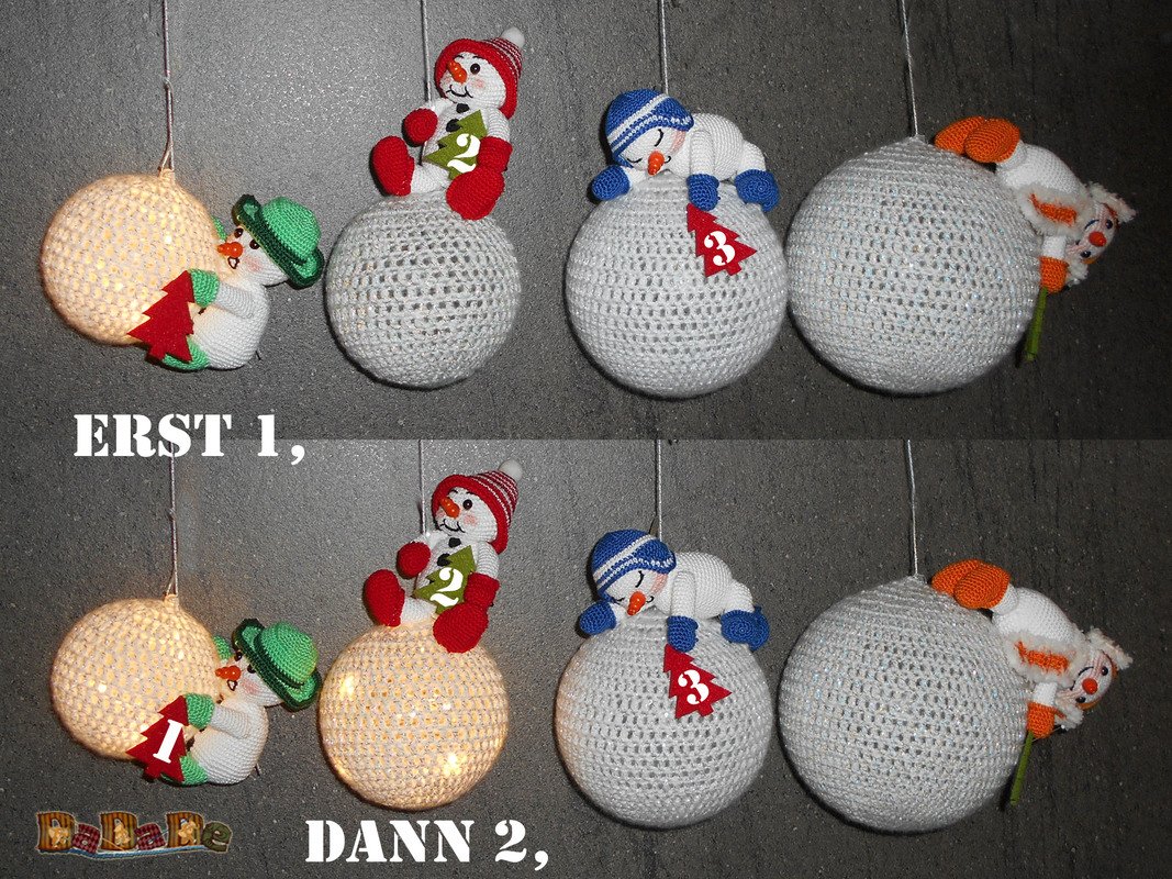 mit LED-Lichter sind die 4 Schneemänner als Adventskranz oder auch als Dekoration