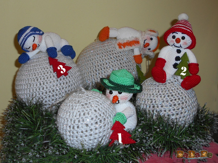 Mit Wolle der Nadelstärke 2 werden die Schneemänner ungefähr ;