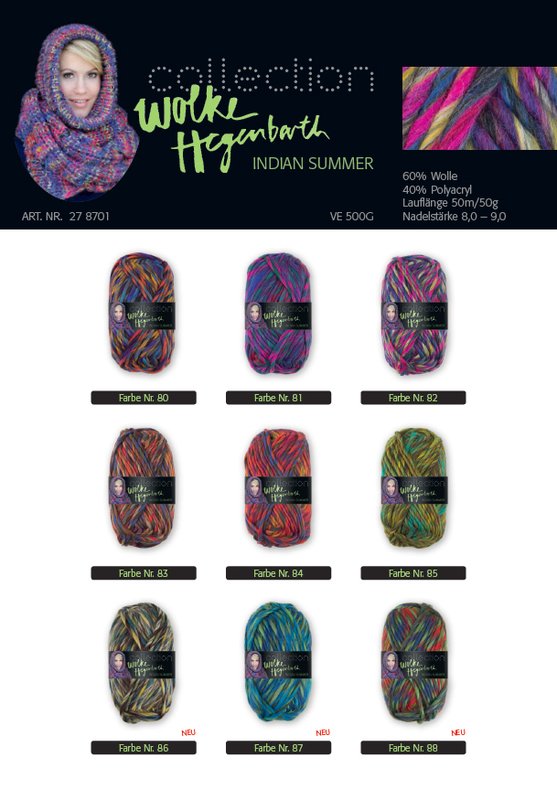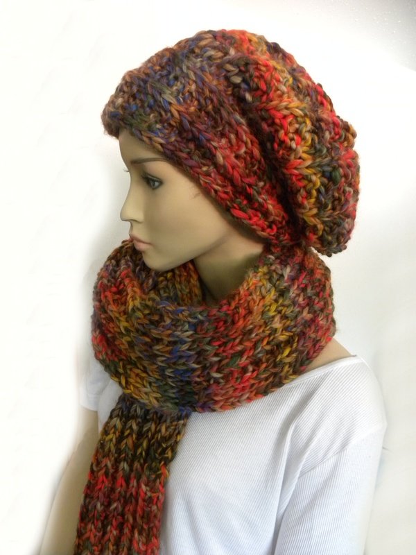 Material: 500 g Rot/Grün color (Farbe 83) „Collection Wolke Hegenbarth – Indian Summer“ (60% Wolle, 40% Polyacryl, LL = 50 m/50 g) von L & K. Stricknadeln Nr. 9 und 1 kurze Rundstricknadel oder 1 Nadelspiel Nr. 8 v