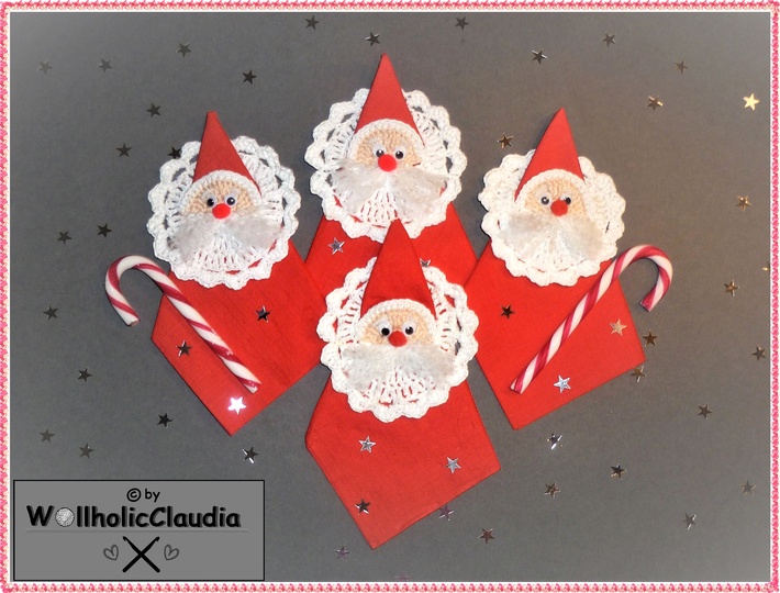 Diese wunderschönen Serviettenhalter sind ein toller Blickfang auf der festlichen Weihnachtstafel. Auch ein perfektes Geschenk für alle, die das Außergewöhnliche lieben. Sie haben bei angegebener Woll- und Nadelstärke einen Durchmesser von ca.10 cm.