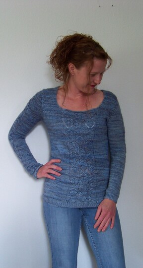 Der romantische Pullover Lovely Leaves wird von oben nach unten, an einem Stück und ohne Nähte gestrickt. Das zarte Lacemuster auf der Vorderseite des Pullovers ist einfach zu arbeiten und gibt dem Strickstück die romantische Elleganz. Die Schultern haben eine leichte Schrägung mit eingearbeitet, die mit verkürzten Reihen gestricktt wird (Videolink in der Anleitung zu einem YouTube Video, dass diese Technik sehr gut erklärt ist enthlaten). Für die Ärmel werden Maschen aus dem Armausschnitt aufgenommen und mit verkürzten Reihen wird dann die Armkugel gestrickt. Ideal für alle Jahreszeiten. Eine Schemazeichnung mit genauen Maßangaben und eine Strickschrift für das Lacemuster ist in der Anleitung mit enthalten.