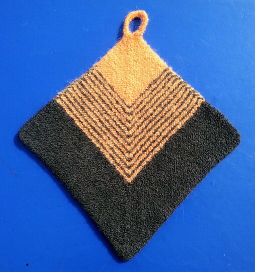 Gefilzt sind Topflappen besonders funktional. Man kann dieses Modell genauso gut s t r i c k e n, und zwar in 2 Varianten.