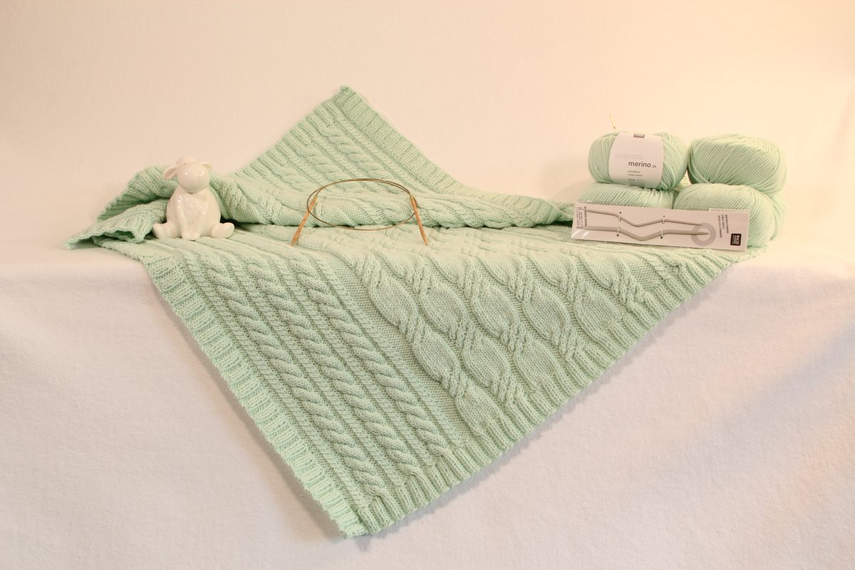 Downloadanleitung zum Stricken einer wirklich besonderen Babydecke, 60x70 cm aus reiner, hochwertiger Merinowolle!