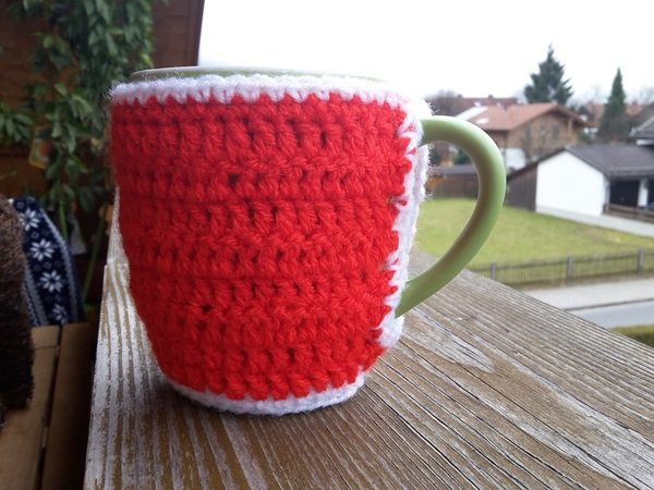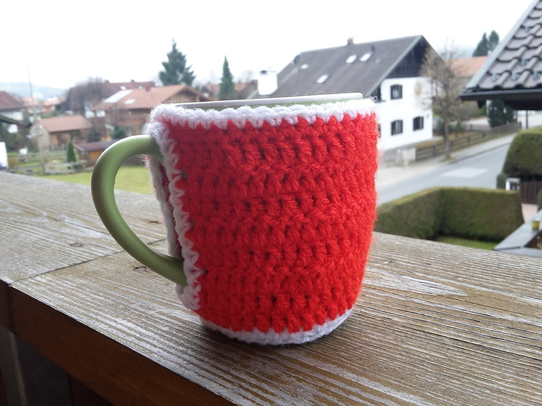 Mit einer schönen Tasse Tee und der weichen und warmen Umhäkelung wird die kalte Jahreszeit zum Genuss.