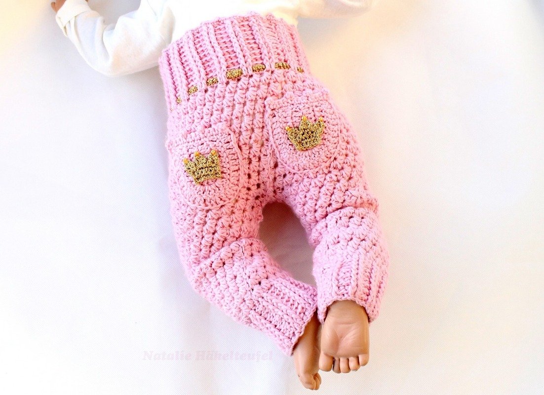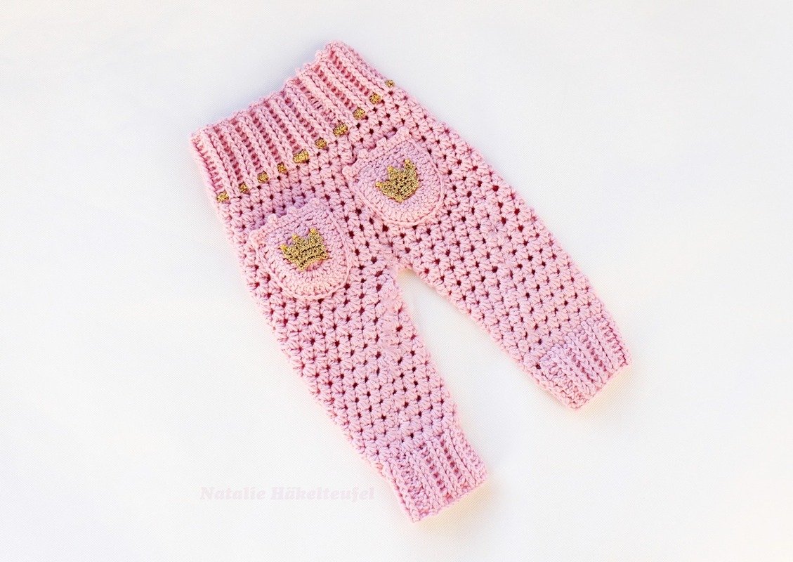 Diese PDF-Häkelanleitung besteht aus bebilderter Anleitung zum Häkeln von Kinderhose (Pumphose) "Prinzessin" mit Sternchenmuster und zwei Taschen hinten. Damit können Sie schnell schöne Babyhose (Kinderhose) in der Größe 50/56, 62/68,74/80, 86/92, 98/104, 110/116 für Ihr Kind (Enkelkind) häkeln. Häkeln Sie eine bequeme Hose für den Winter für Ihr Kind!