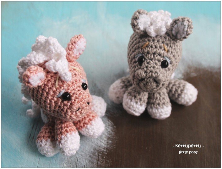 Die Pferdchen sind von naturaler Baumwollegarn, kleinen liebevollen Detailien und einer extra Portion Liebe gemacht - aber für Dein kleines Pony kannst Du jedes Garn verwenden, das Du gern magst - Pferdchen wird ein bisschen größer oder ein bisschen kleiner, bleibt aber immer gleich niedlich!