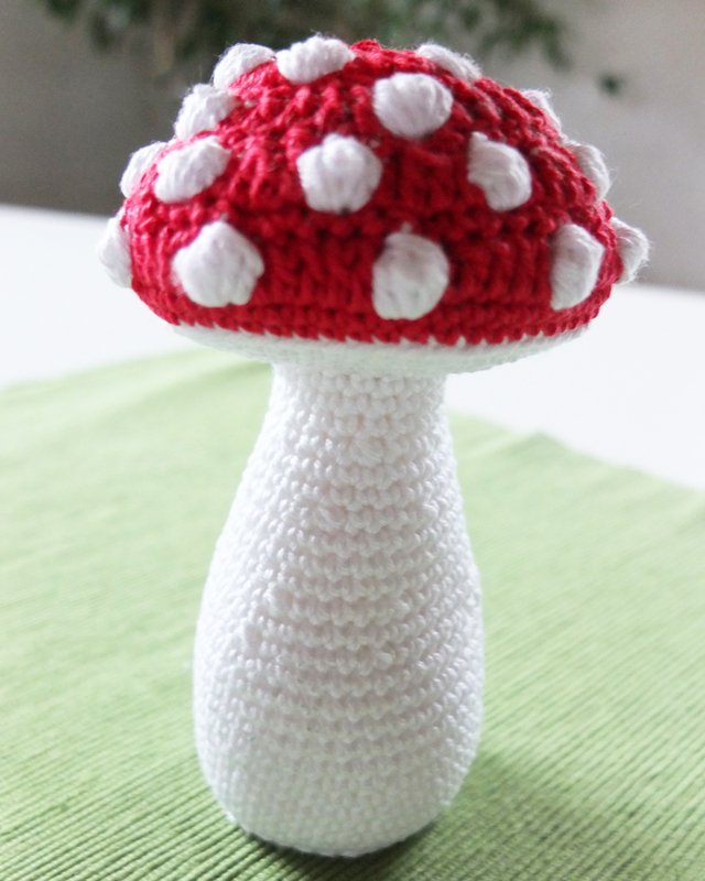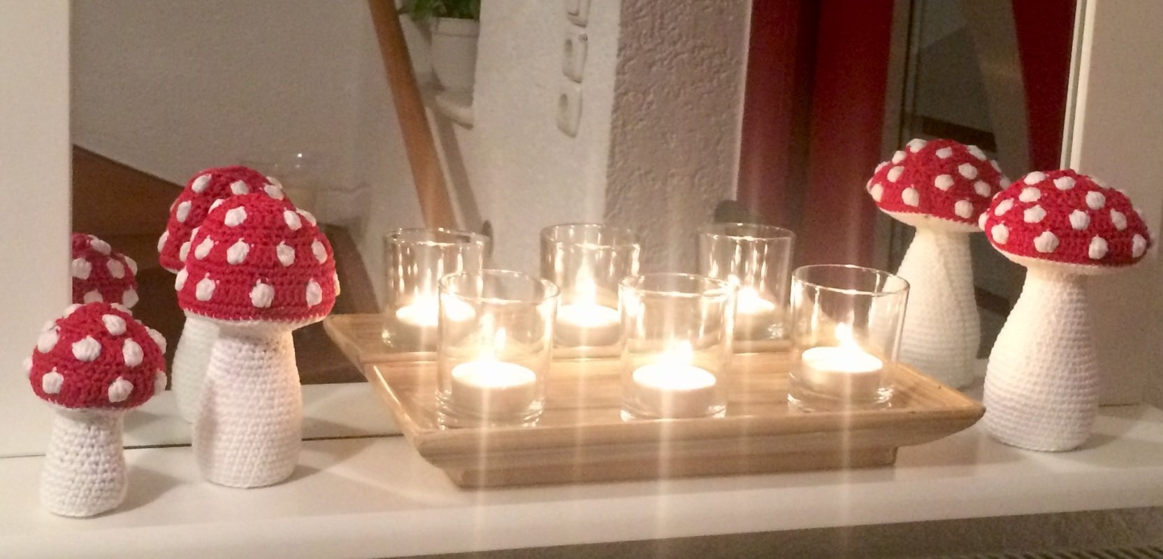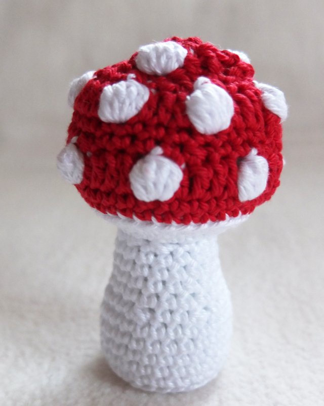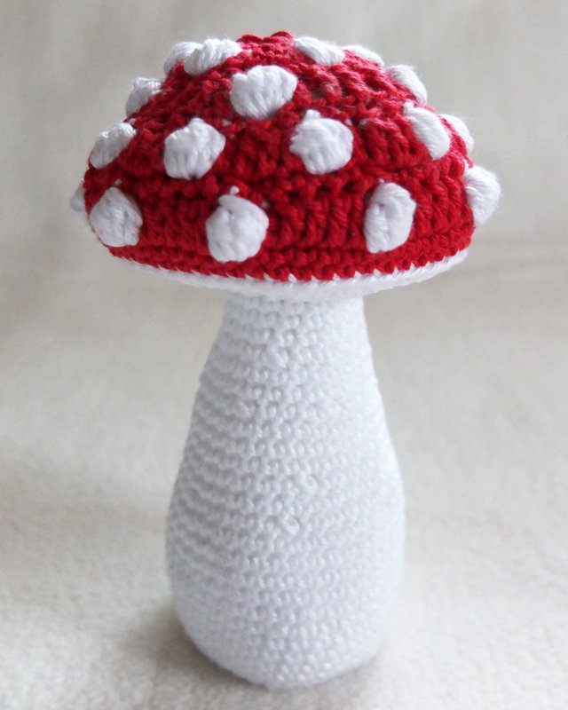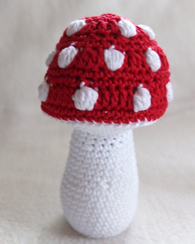 Eine Häkelanleitung für Fliegenpilze in drei verschiedenen Grössen und Formen