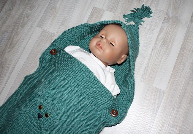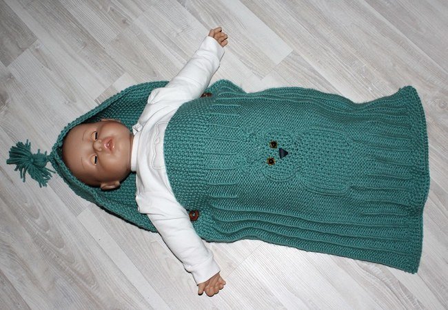 Strickanleitung Baby-Schlafsack, Baby-Schlupfsack mit Eulenmotiv, ca. 0 - 7 Monate