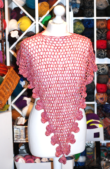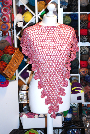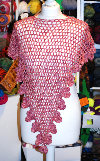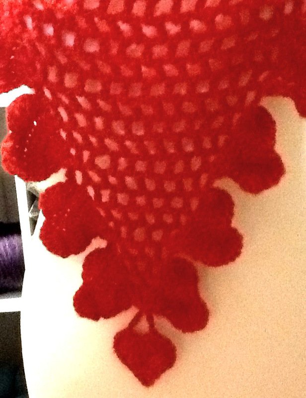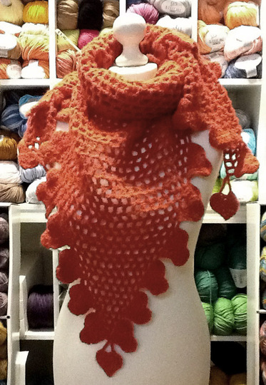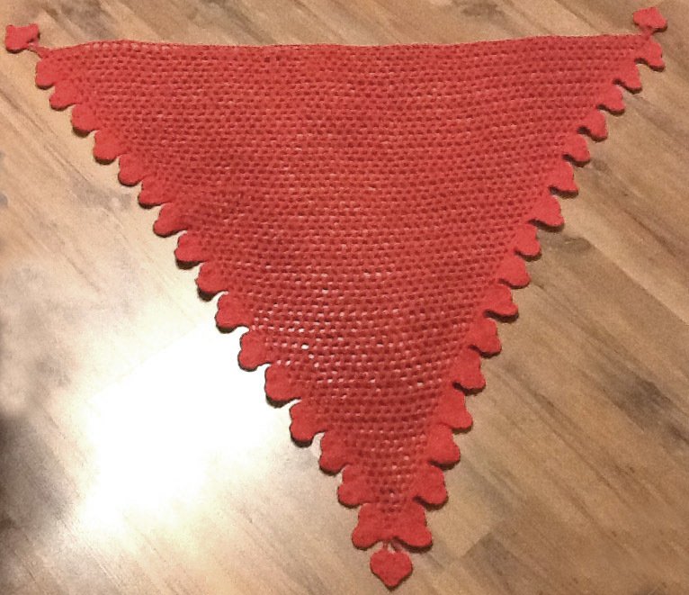 Dieses herzige Dreieckstuch mit der Herzborte ist auch als Poncho machbar. Das Dreieck ist recht spitz, weil in jeder Reihe nur ein Kästchen zugenommen wird.