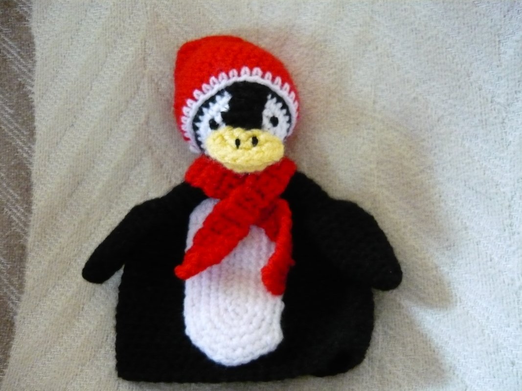 Der Pinguin ist auch sehr gut geeignet, um ihn nach dem Frühstück als Handpuppe zu benutzen.
