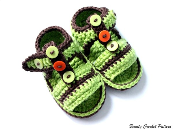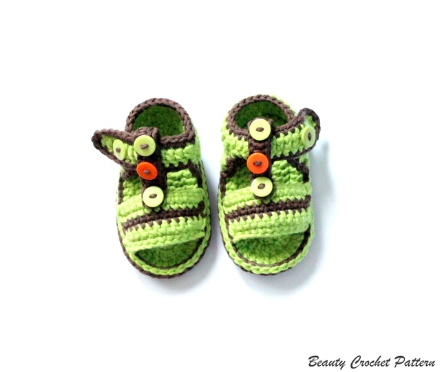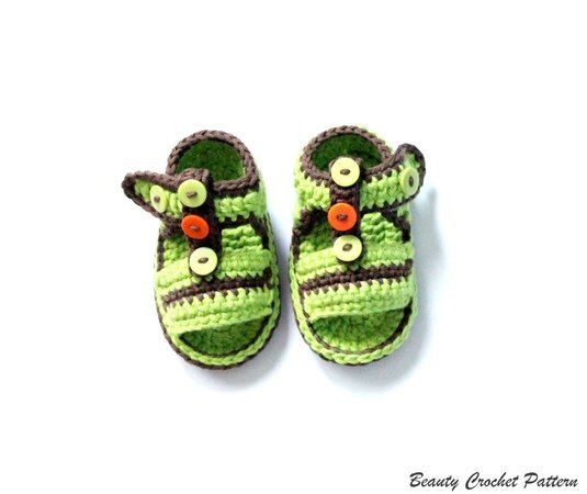 Häkelmuster für Baby-Sandalen einfach für Anfänger. Muster umfasst 3 Größen: 0-6 Monate, 6-12 Monate, 12-18 Monate