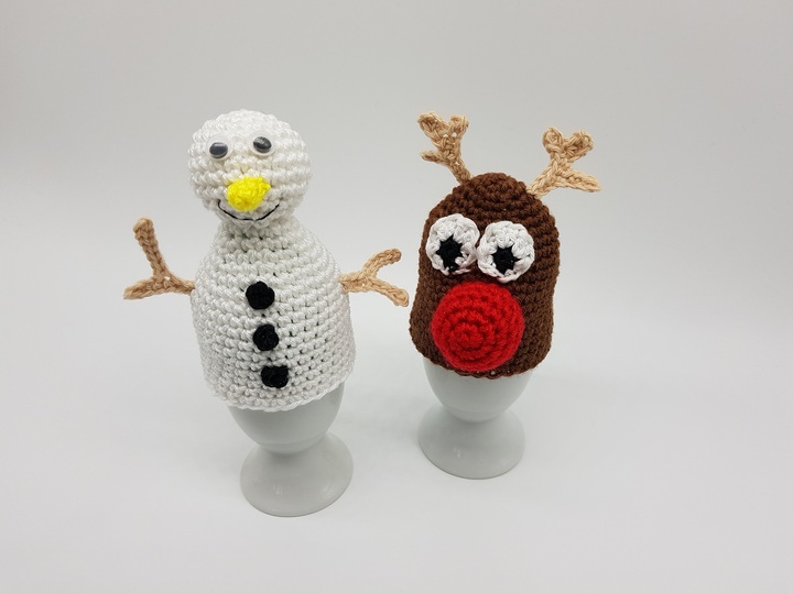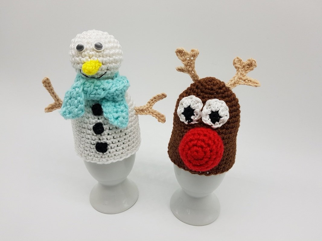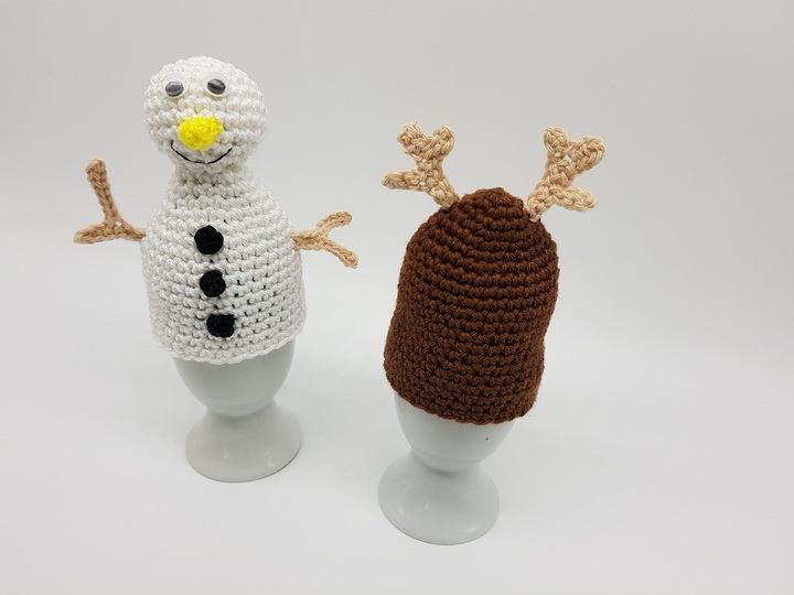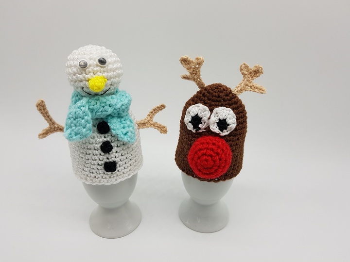 Häkel dir deshalb die süßen Schneemann und Rentier Eierwärmer, um deinen Frühstückstisch der Jahreszeit anzupassen.