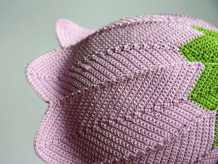 Die Mütze ist von unten nach oben gehäkelt.