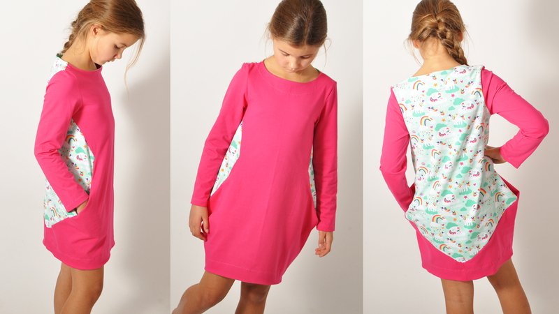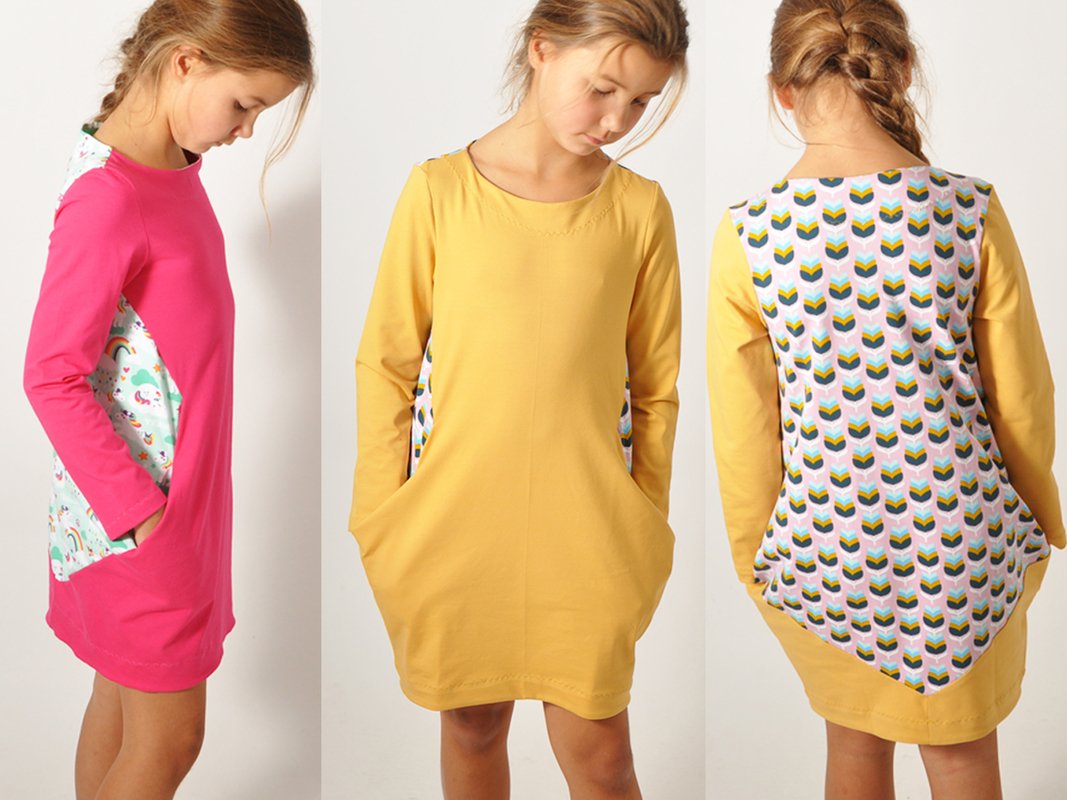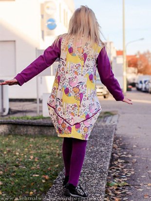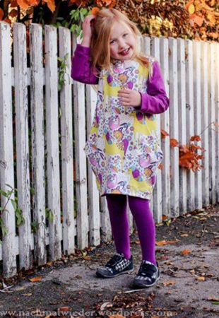 Das KANTIG.kleidchen ist erstmal kantig. Und etwas „anders“ zu nähen. Die in der Taille nach vorne gezogenen Seitennähte, in denen die Tasche dann auch noch verschwindet machen das Kleidchen zu etwas Besonderem. In Wohlfühlweite gehalten ist es sowohl für die Kleinsten zum Spielen geeignet als auch für die Großen als cooles Kleid, was die ganz Großen auch schon tragen.