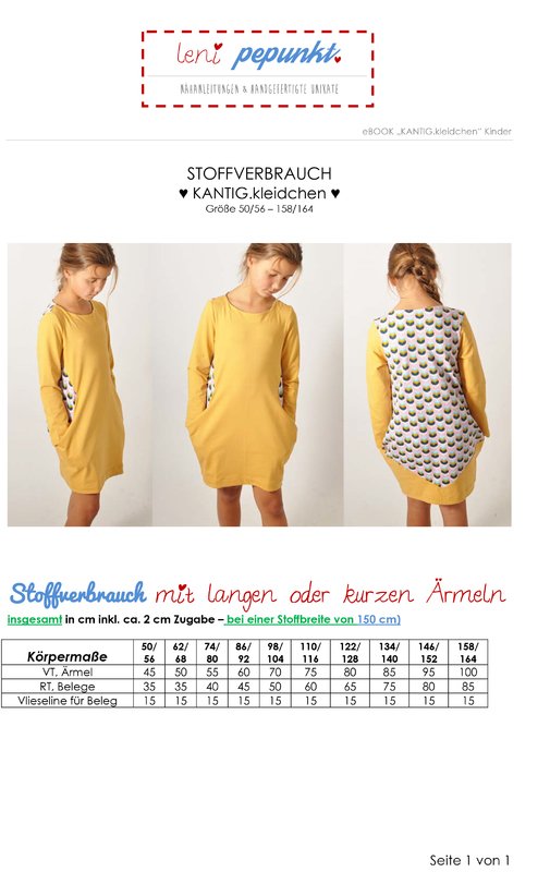 Wie bei allen “leni pepunkt.” Kinder Schnitten sind auch hier alle Doppelgrößen von 50/56-158/164 beinhaltet!