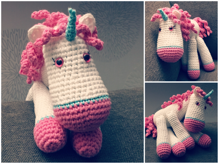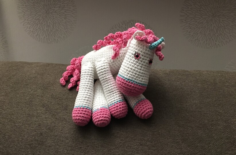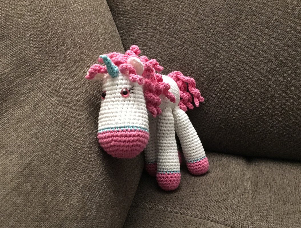 Das fertige Kuscheltier ist je nach verwendeter Wolle zwischen 15 und 20 cm groß.