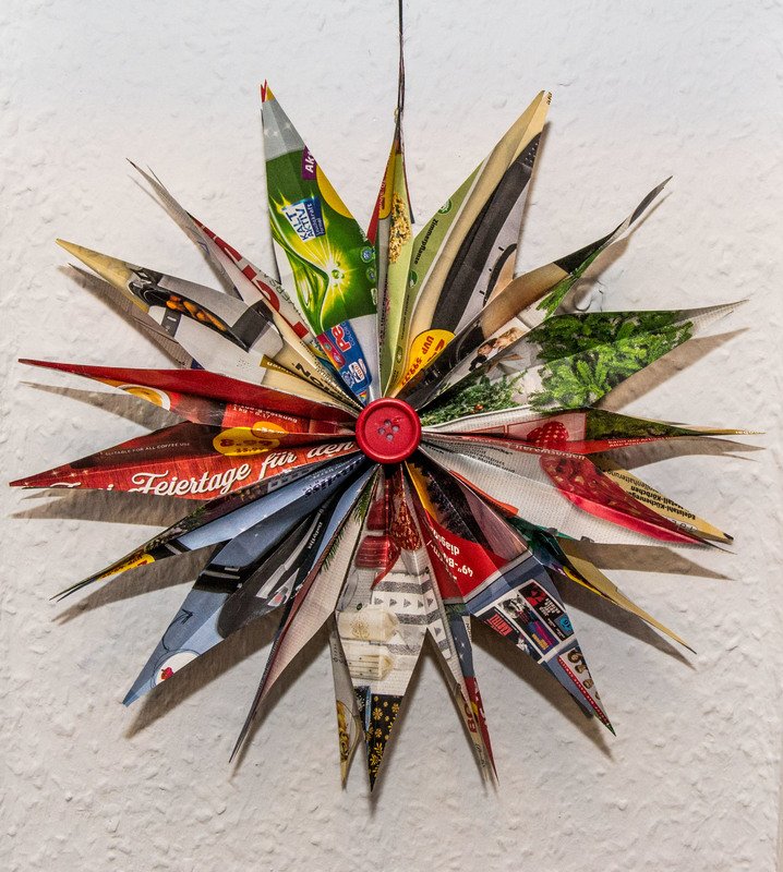 Werbeprospekte, alte Zeitungen, alte Bücher - einfach das ganze Papier, das sonst im Müll landen würde, ist ein prima Material für die vorweihnachtliche Deko zuhause!