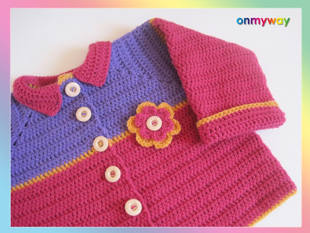 für zauberhaftes Jäckchen mit Häkelblume in Größe 80/86