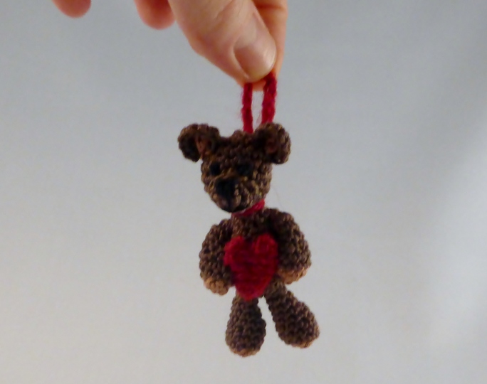 Mit einer 2.0 Häkelnadel erreicht der Teddy eine Höhe von ca. 7 cm.