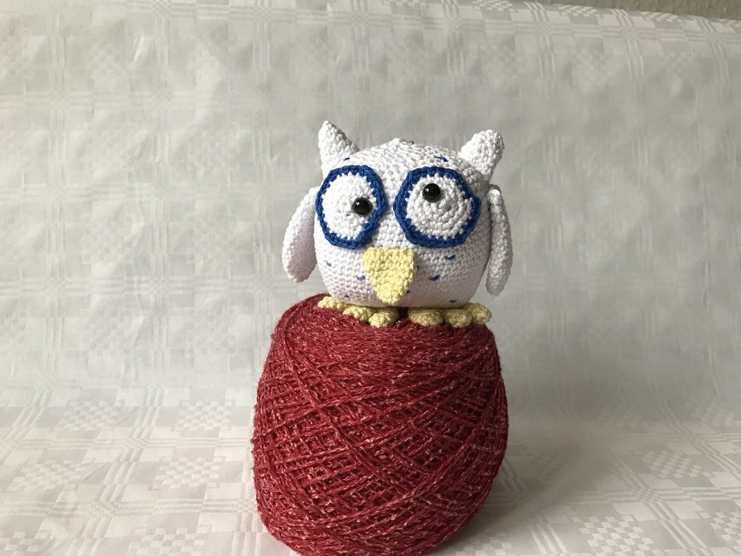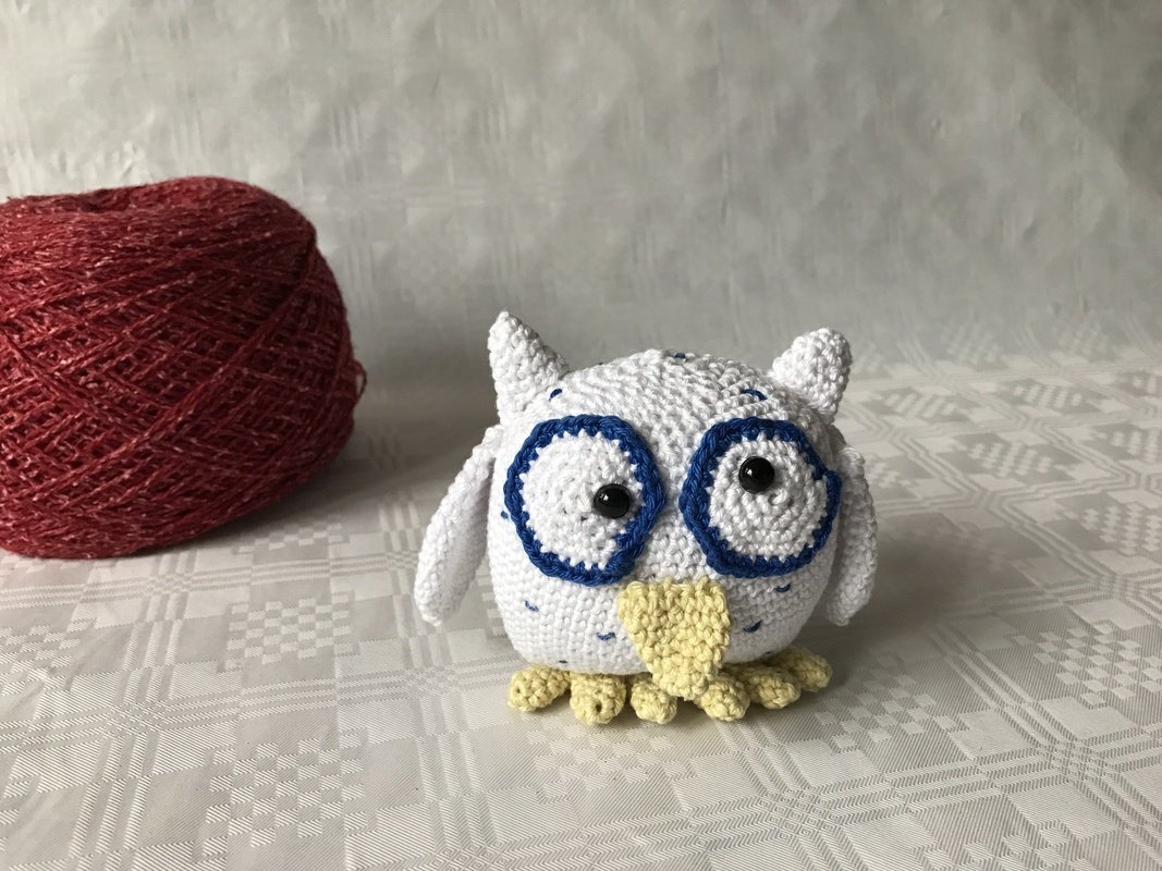 Eule zum Nachhäkeln. Mit der 9-seitigen ausführlichen und bebilderten Anleitung könnt Ihr Erna spielend leicht nacharbeiten. Sie ist ca. 9cm groß. Ihr benötigt: