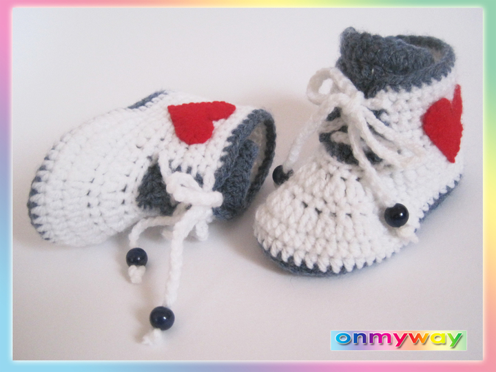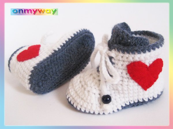 ♥ Die Häkelanleitung für die Babyschuhe SWEET HEART ist für Größe 19 geschrieben: