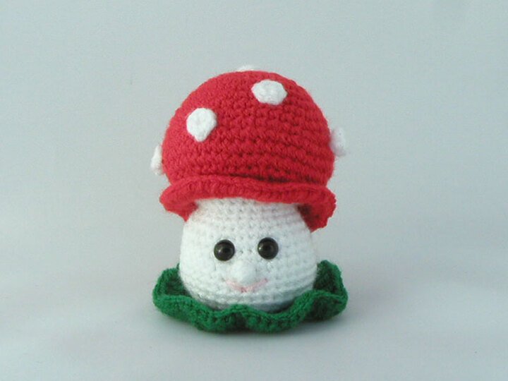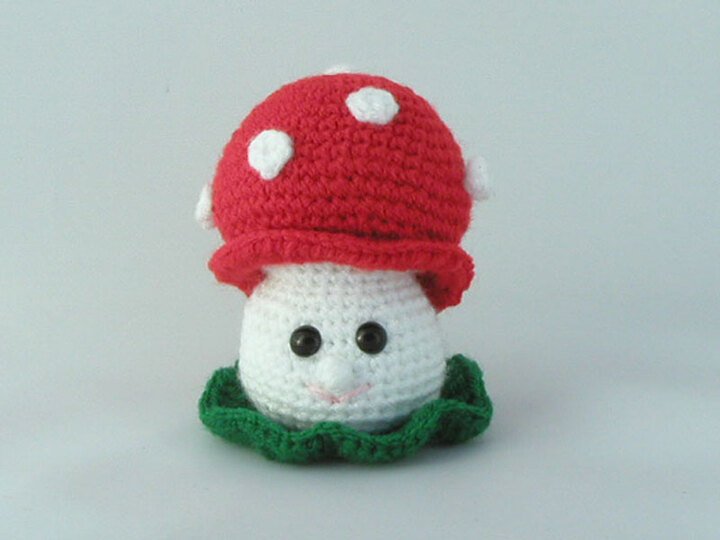 Hier gibt es einen kleinen, lustigen Fliegenpilz zum verschenken. Der Glücksbringer ist ca. 9 cm hoch und wird in einem Stück gehäkelt.