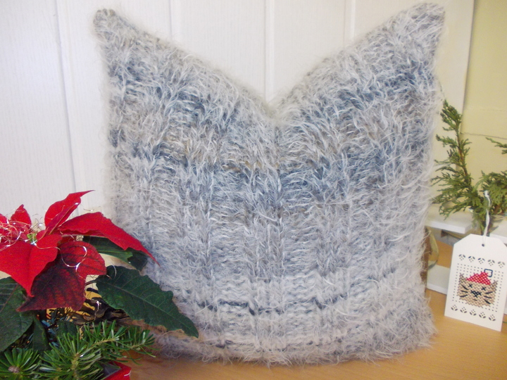 Dieses Kissenist ein einaches Wochenendprojekt. Anfänger kommen schnell ans Ziel, denn mit Nadel Nr. 8 strickt sich das Kissen fast von allein. Das einfache Rechts-Links-Muster bringt Struktur und ist ganz schnell im Kopf.