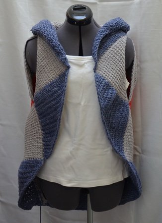 Einige Infos vorab: Die Weste wird tunesisch gehäkelt – das meiste im Grundmuster, ein Teil in einem leichten Ajourmuster. Die Weste passt über mehrere Größen hinweg (siehe oben). Wer sie etwas kleiner möchte, kann vllt. mit der Maschenprobe ein wenig trixen und eine kleinere Nadel nehmen, so dass auf 10 cm etwas mehr Maschen benötigt werden, als angegeben - so fällt die Weste dann insgesamt etwas kleiner aus. Wer sie etwas größer möchte, macht das genau umgekehrt. Ein Umrechnen der Maschenzahl ist hier leider nicht ohne weiteres möglich. Die Weste hat am Rücken eine Länge von 80 cm vom Kragen bis zur unteren Kante der Blende.