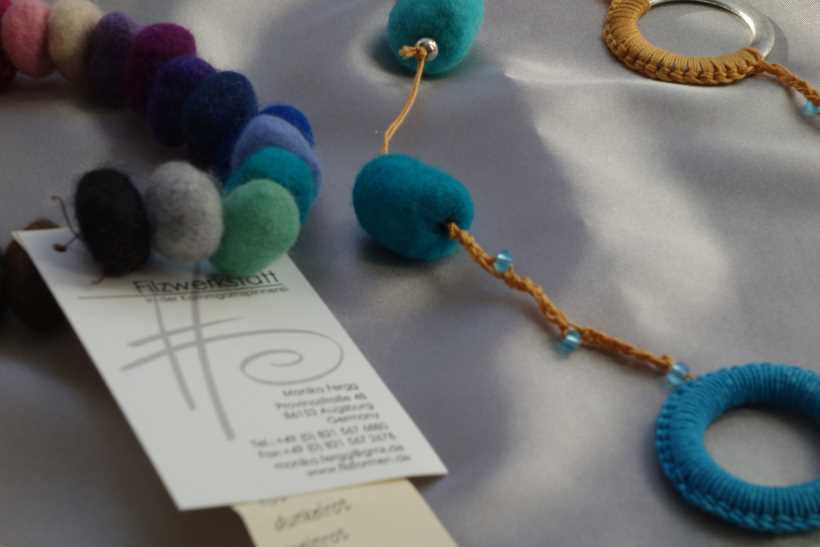 Filzperlen sind ebenfalls ein spannendes Material und gibt es in unzähligen Farben (siehe Vorschaubilder), so dass Ihr hier die Kette komplett zu Eurer Garderobe und Euren persönlichen Lieblingsfarben umstylen könnt.