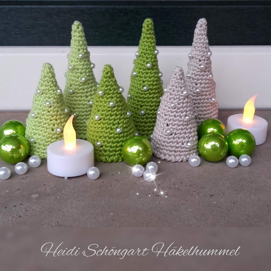 Dies ist eine Häkelanleitung für 2 Weihnachtsbäume mit Perlen und Teelicht. Die Anleitung ist Dank der ausführlichen Beschreibung und Bebilderung auch für Anfänger geeignet. Die Größe des kleinen Baumes ist ca. 8 cm hoch und die des großen Baumes ca. 10 cm hoch. Es varriert, je nach Garn, Häkelnadel und wie fest oder locker gehäkelt wird.