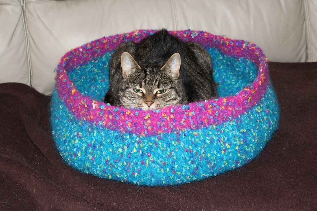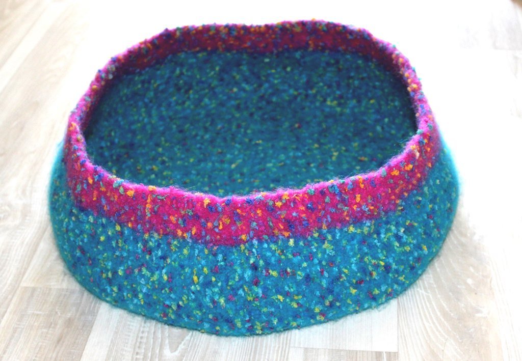Katzenkorb, Katzenbett, Hundekorb, Hundebett - gestrickt und in der Waschmaschine gefilzt