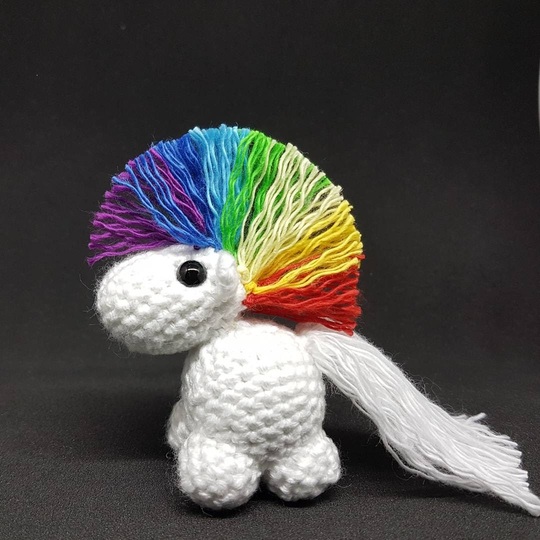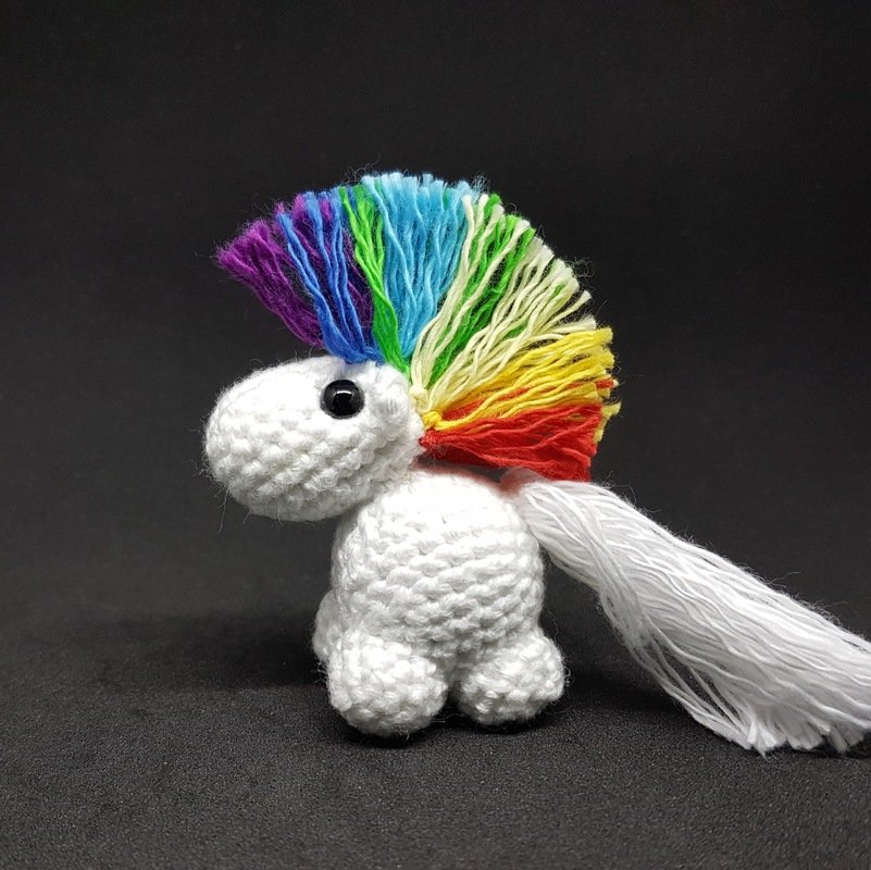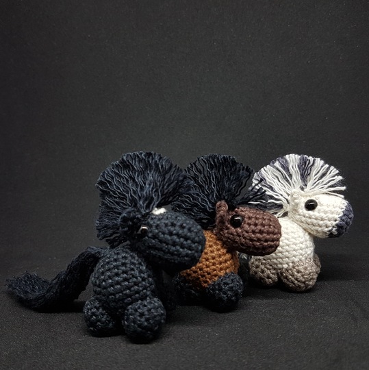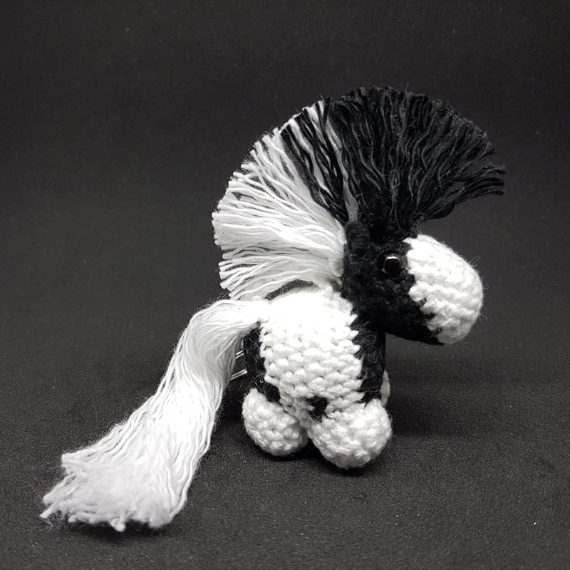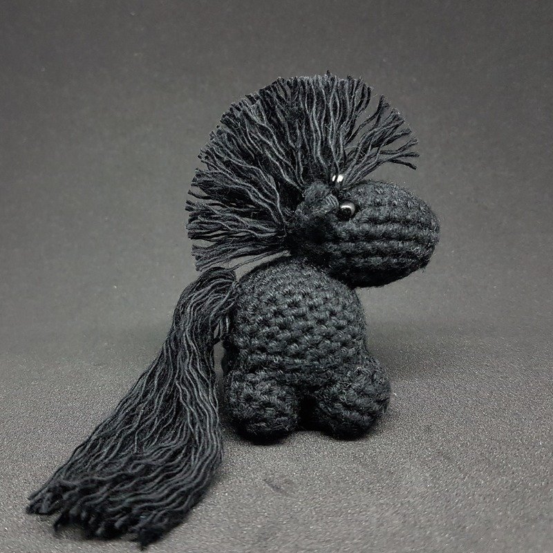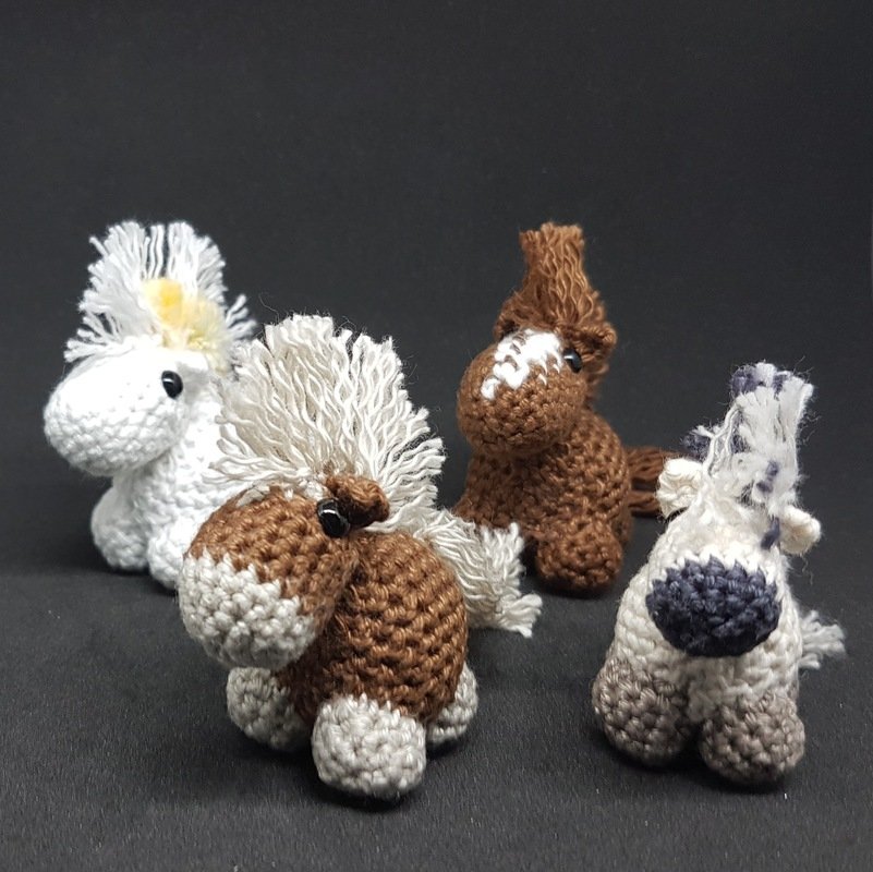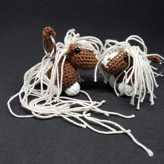 bei 50 g/115 m Schulgarn für Nadelstärke 3-4 wurde das Pferdchen ca. 6x6 cm). Bei dieser Größe eignet sich das Pferdchen auch gut als Schlüsselanhänger