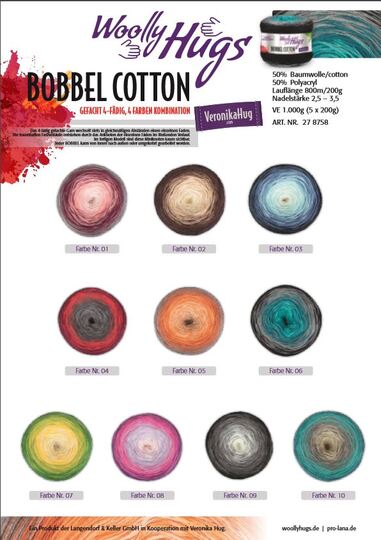 Material: Woolly Hugs BOBBEL-COTTON (50% Baumwolle, 50% Polyamid, Lauflänge ca. 800 m/200 g) von L&K 1 BOBBEL in Wunschfarbe (für das Original wurde die Farbe Nr. 01 verwendet) 1 Häkelnadel Nr. 3,5 - 4 (locker häkeln)