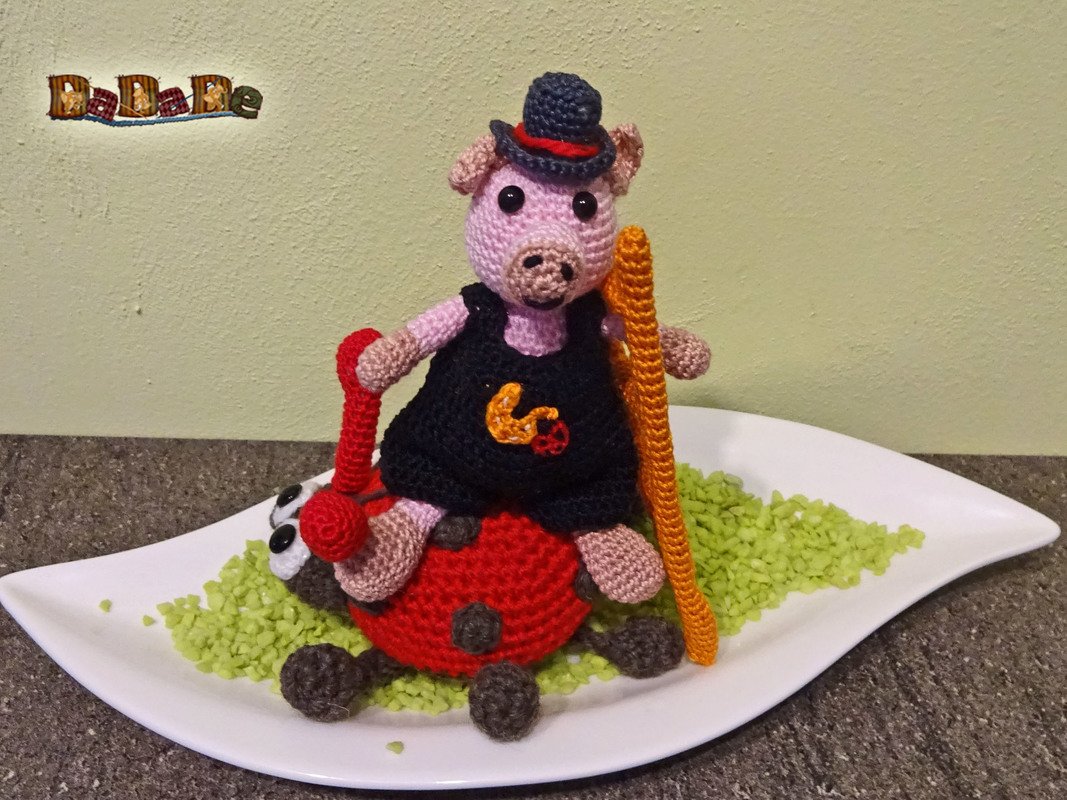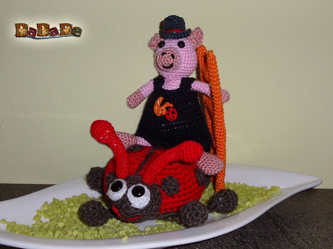 das Schwein mit dem Marienkäfer ist schnell gehäkelt.