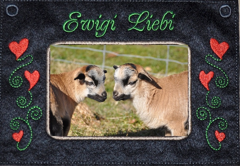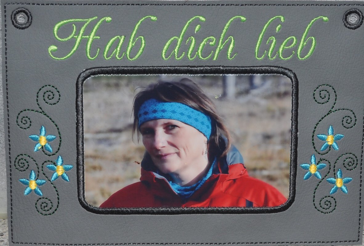 Diese Fotorahmen werden ITH, das heisst in der Stickmaschine gestickt. Man kann dazu Kunstleder oder Filz verwenden, und das Foto wird direkt eingestickt. Mit einem kleinen Trick lässt sich der Rahmen aber auch so herstellen, dass man später die Fotos auswechseln kann. Aber seien wir ehrlich, wer möchte das schon? Die Rahmen sind so schnell gestickt dass das eine untergeordnete Rolle spielt. Und Fotorahmen kann man ja schliesslich nie genügend haben.