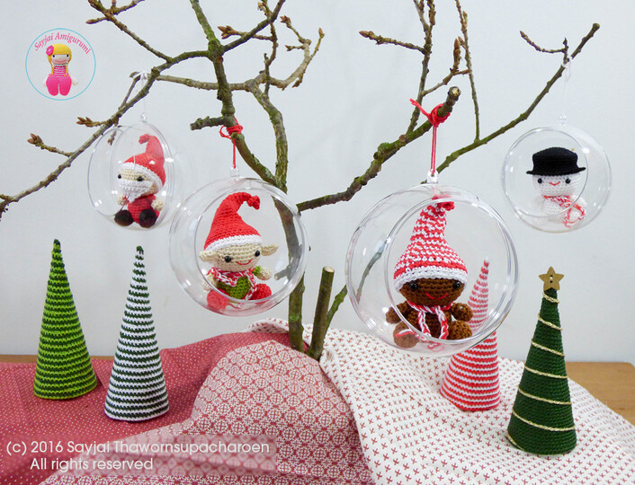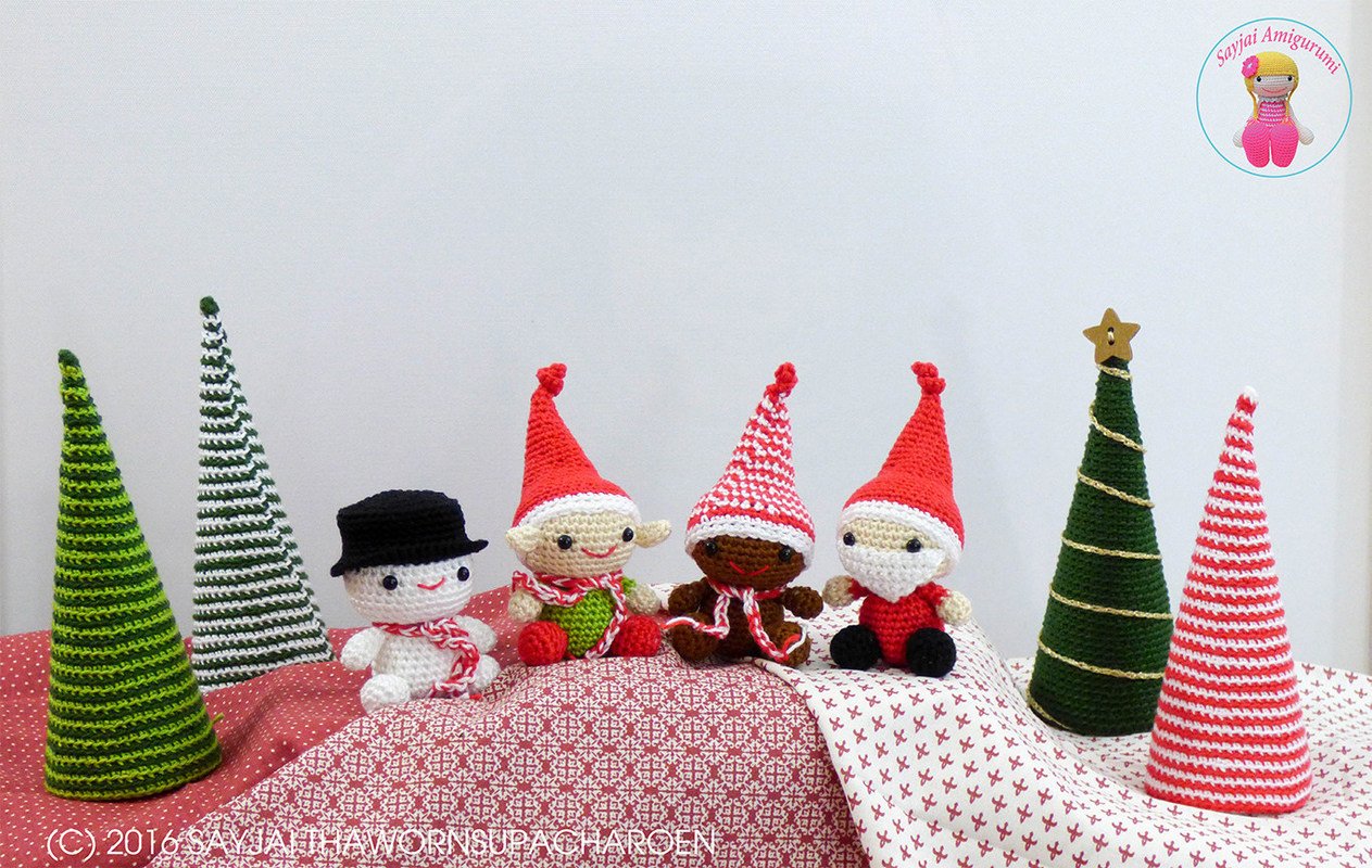 Weihnachts Amigurumi ist eine Häkelanleitung für 4 niedlichen und zauberhaften Weihnachts-Figuren und Weihnachtsbaum. Erhältlich sind eine: Schneemann, Weihnachtsmann, Weihnachtself und Lebkuchenmann.