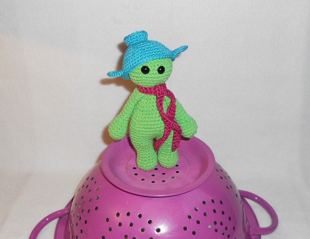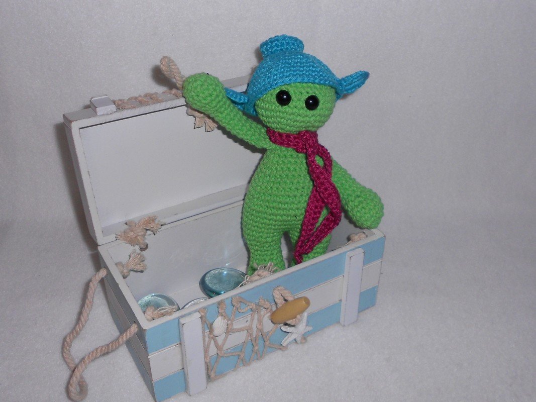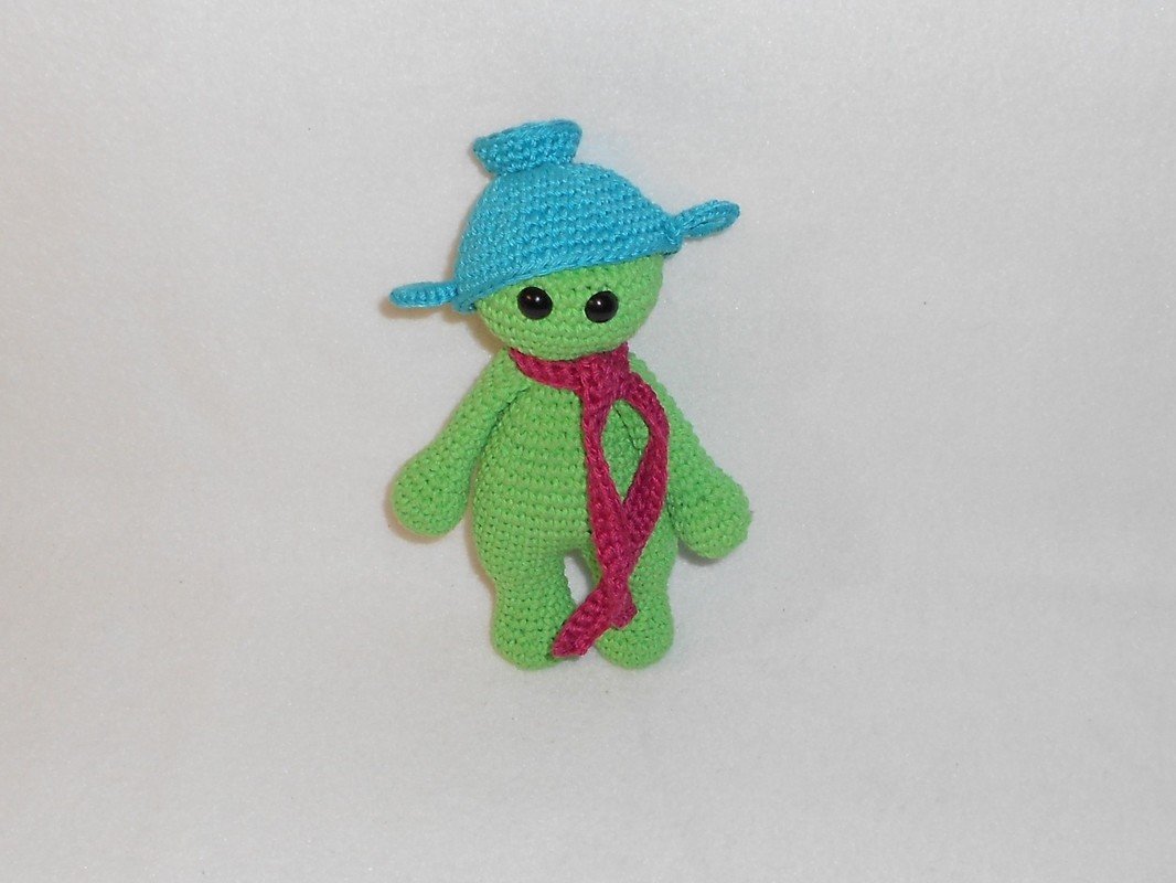 Mit Catania ähnlichem Garn und Nadeelstärke 2,5 erhält die Figur eine Höhe von ca 16 cm