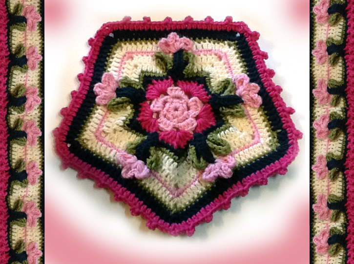 Diesen wunderschöne, fünfeckige Granny ist etwas kniffelig, aber um so schöner.