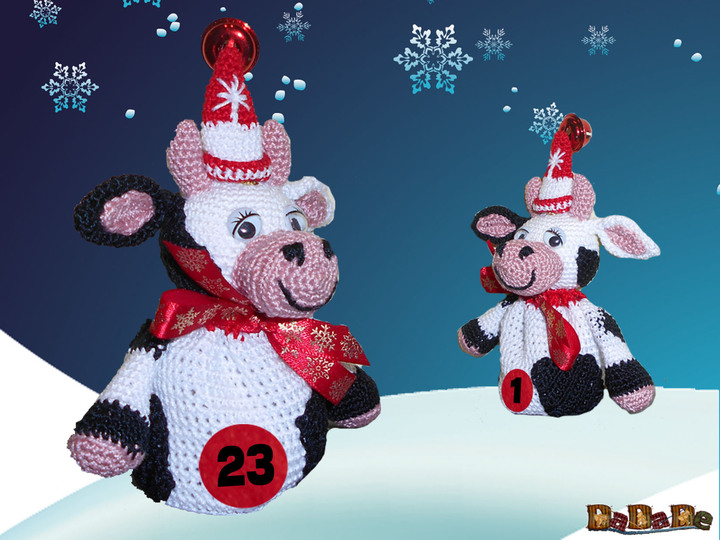 Sie kaufen hier die nur Anleitung für die Kuh mit Weihnachtsmütze