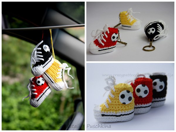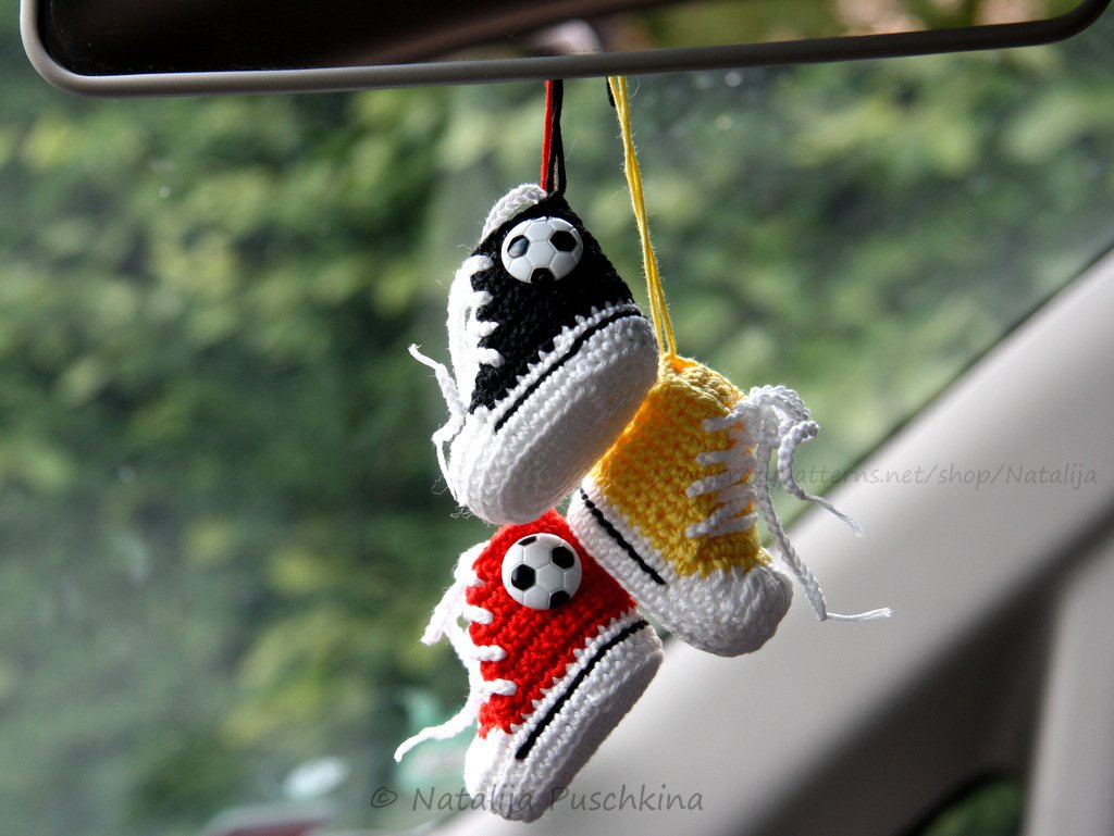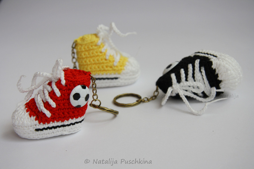 Verkauf der von Dir hergestellten Schlüsselanhänger ist möglich: Du darfst die Artikel, die Du mithilfe meiner Anleitung zum Häkeln von Fanartikel 'Fußball Schuhe' gefertigt hast, in beliebiger Stückzahl gewerblich verkaufen. Bitte den Hinweis: „Angefertigt nach dem E-Book von Natalija Puschkina https://www.crazypatterns.net/de/store/Natalija“ dazusetzen.