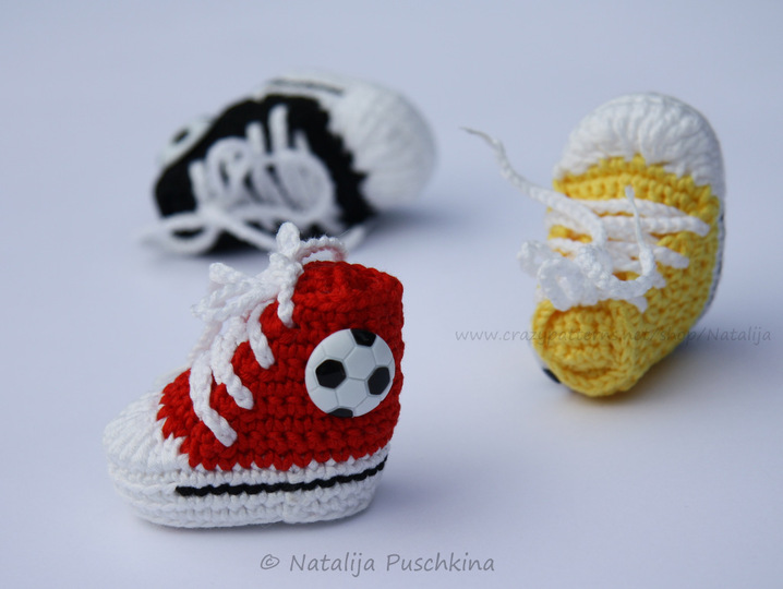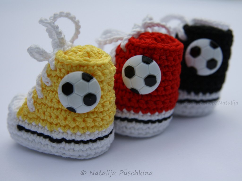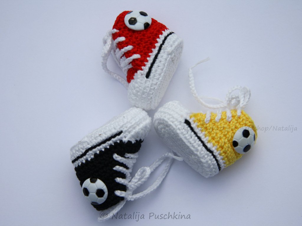 Häkle sofort 3 Schuhchen, um Farben der Deutschland Flagge zu bekommen.