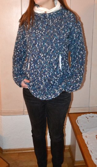 Material: 750 g "CRUNCHY" Marke Austermann, Lauflänge ca 50 m (Gr. 38, 40 ), 800 g ( Gr. 42, 44 )