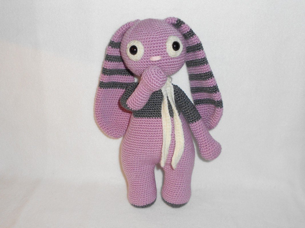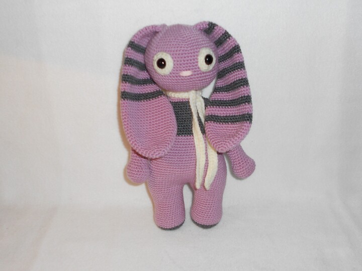 Mit Polyacrylgarn und Nadel 2,5 gearbeitet werde ich ca 27 cm hoch und mit Ohren stolze 44 cm.