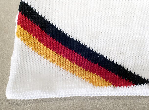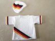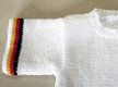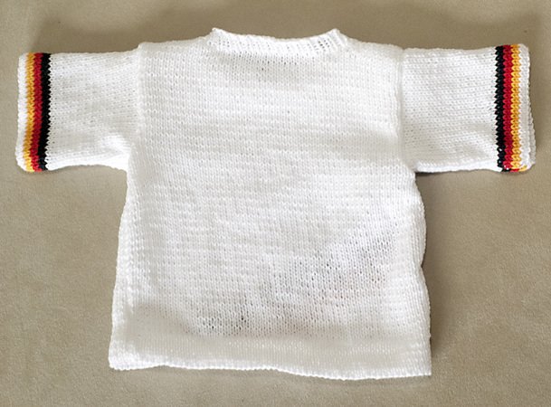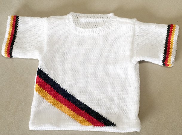 Das Set besteht aus einem Shirt bzw. Trikot und einer Mütze - hier beides aus reiner Baumwolle gestrickt. Die Anleitung enthält Fotos und Schemazeichnungen für alle Maße. Zusätzlich werden Links zu Tutorials für den Matratzenstich und das Arbeiten mit verschiedenen Farben angegeben.