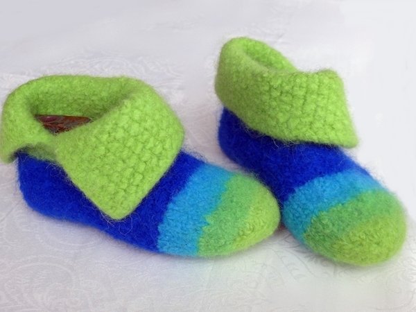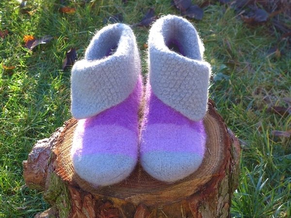 diese Filzschuhe werden Euch begeistern! Sie sind schnell gestrickt, die Farben wählt Ihr nach Lust und Laune. Sie werden in einem Stück gestrickt und kommen dann in die Waschmaschine zum Filzen. Das Ergebnis sind Eure ganz persönliche neuen Lieblingspuschen für Zuhause. Kann man für sich selbst, die Kinder, Enkelkinder, Freunde oder als Gästehausschuhe machen.