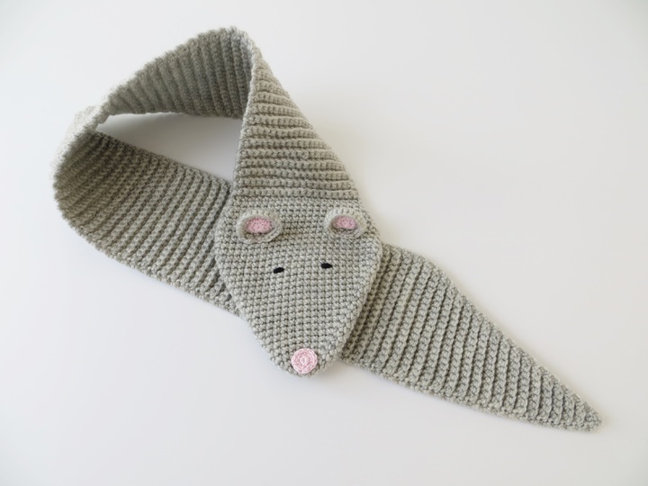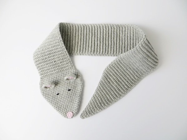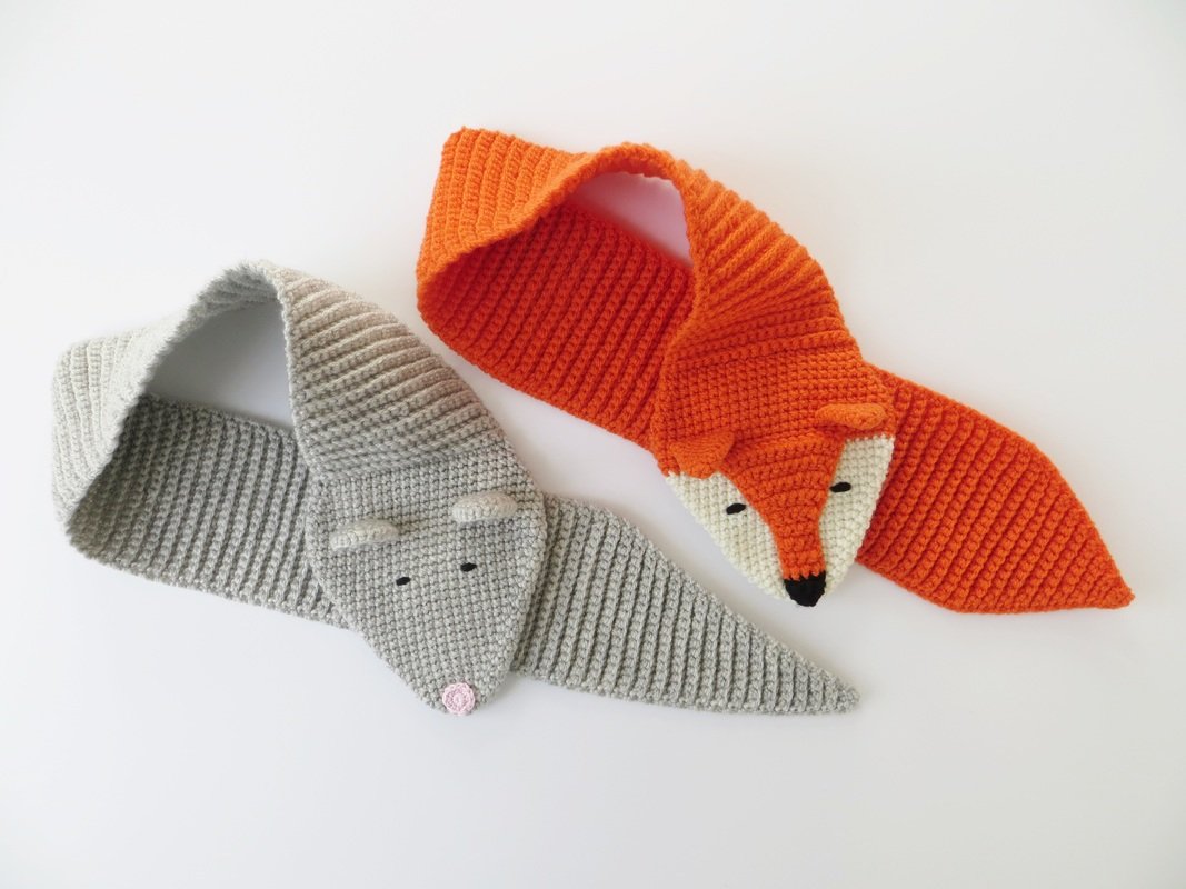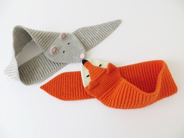 Kinderschal mit Tiermotiv 'Fuchs' und 'Maus', gehäkelt