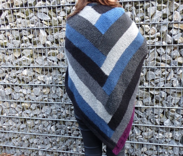 Eine gut verständliche Strickanleitung für einen Poncho in kontrastreicher Streifen-Optik.