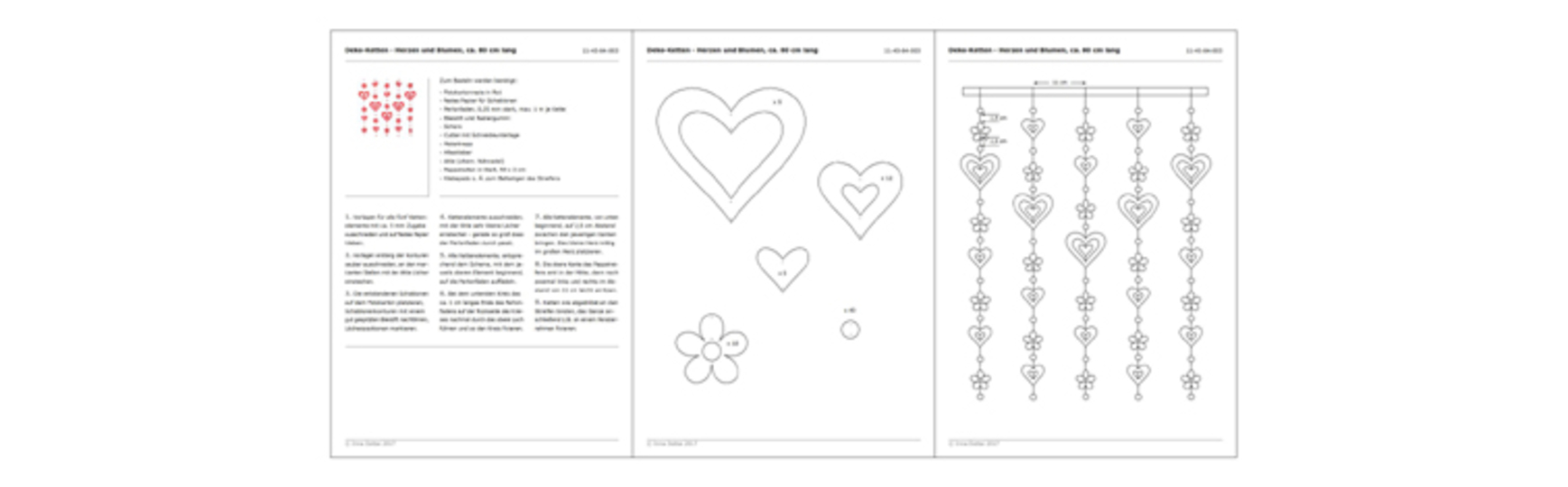 Aus Fotokarton ausgeschnitten und auf Perlonfaden aufgefädelt: Diese Ketten sind sehr einfach gemacht und sehen dabei superhübsch aus – eine tolle Dekoration für den Valentinstag, Muttertag oder einfach so.